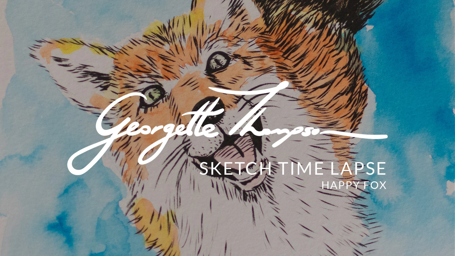 A little time lapse showing the drawing of 'Happy Fox' coming to life. Medium - watercolour and Copic gasenfude marker pen.